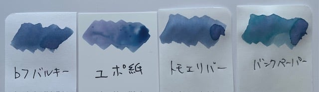 バンクペーパーに描くと、みどり色にゆらめきを醸し出すインク。