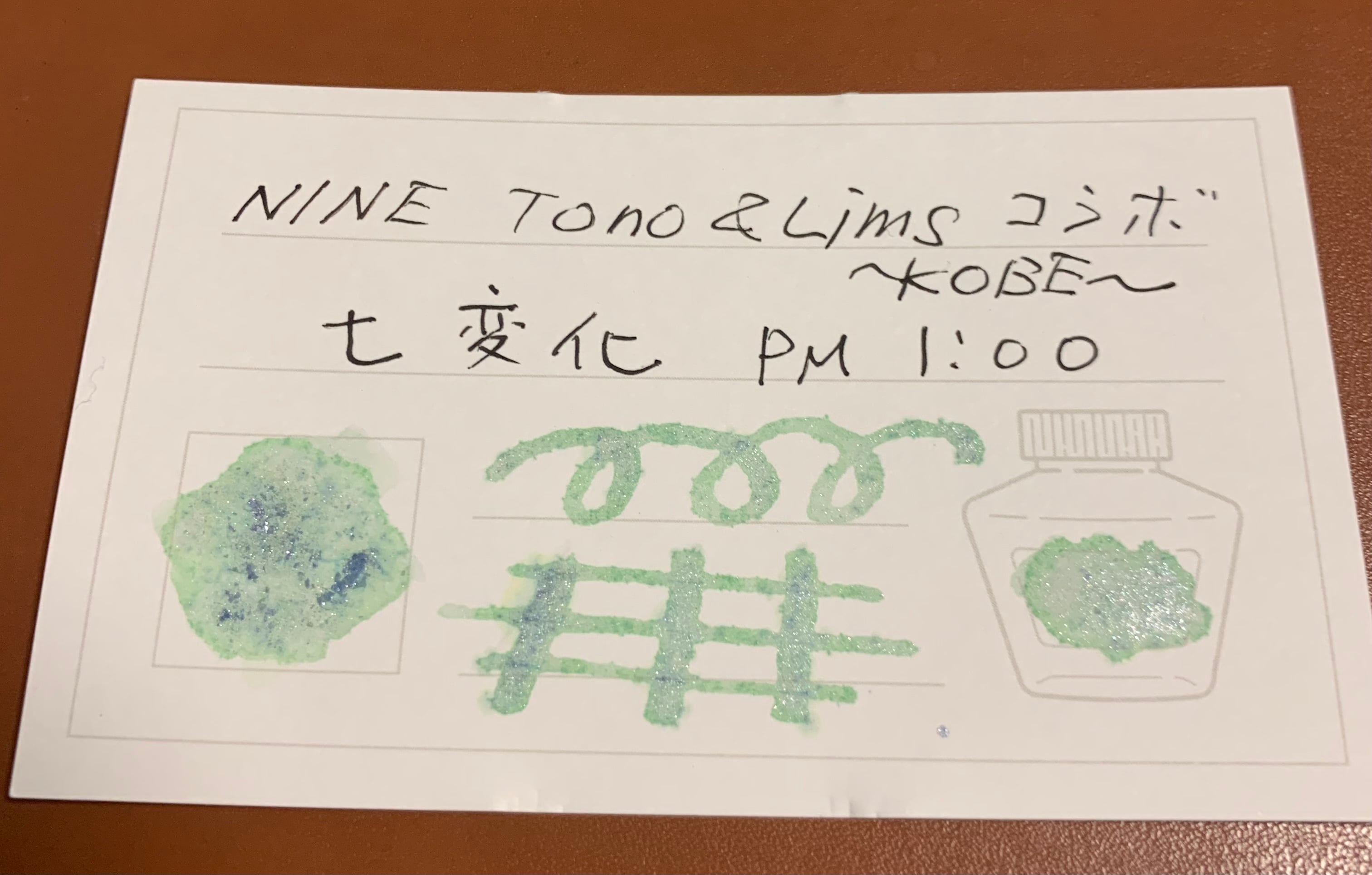 若葉の瑞々しいグリーン基調に、沢山の出展者のご協力のもと、ラメによりさまざまな表情を見せる11色とピュアが神戸ペンショー会場にて発売スタート。