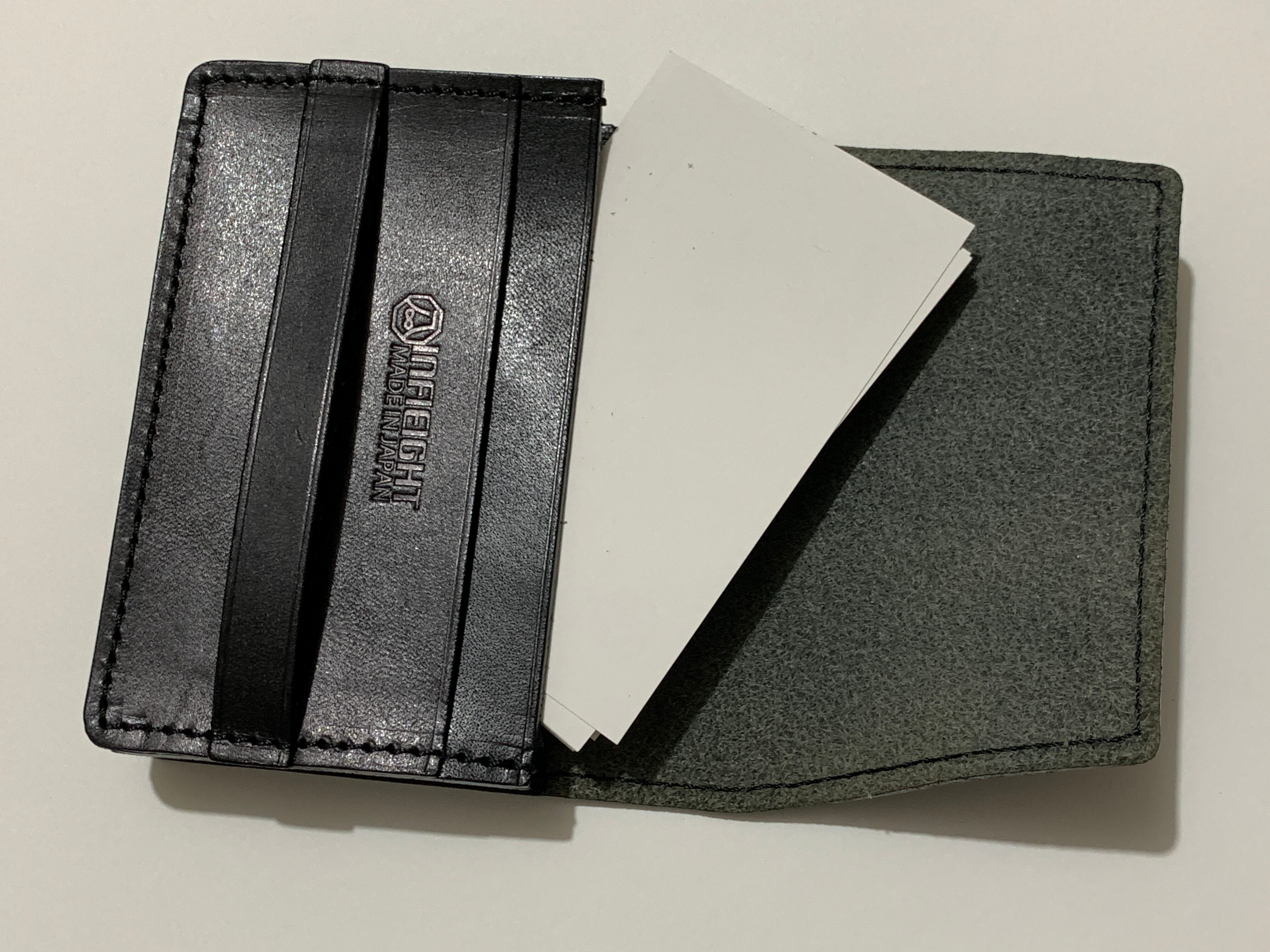 厚手 レザー仕上げのしっかりした名刺ケースです。名刺もたっぷりと50枚ほど収納できます。