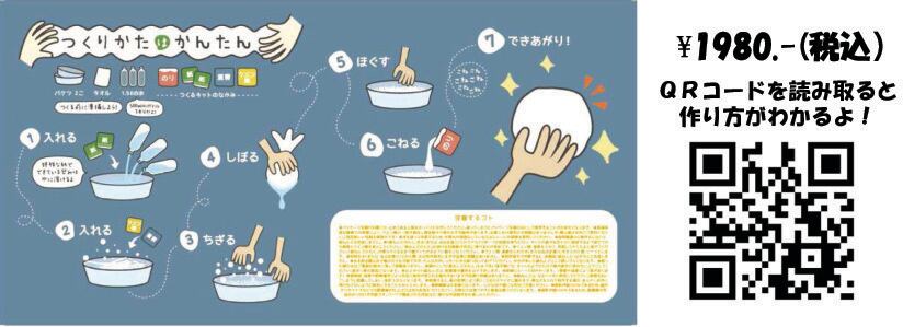 「ホントのかみねんどつくるキット」はすべての素材がセットされているので、バケツやタオル、あとはお水があれば誰でも簡単に制作することができます。所要時間は30分~50分です。 紙のいろいろなことを知っている紙屋さんが手間のかかる紙粘土作りに必要で最適な材料を厳選しました。原料の紙は溶けやすくするために細長く仕上げ、クエン酸・重層・紙の包装紙は水に溶ける特殊素材!みんなが楽しく使いやすい材料を選び抜いています。紙ねんどが何でできているのか、またクエン酸と重曹の化学反応で紙が溶けるという発見と出来上がるまでの工程を間近に見ることができる実験キットです。